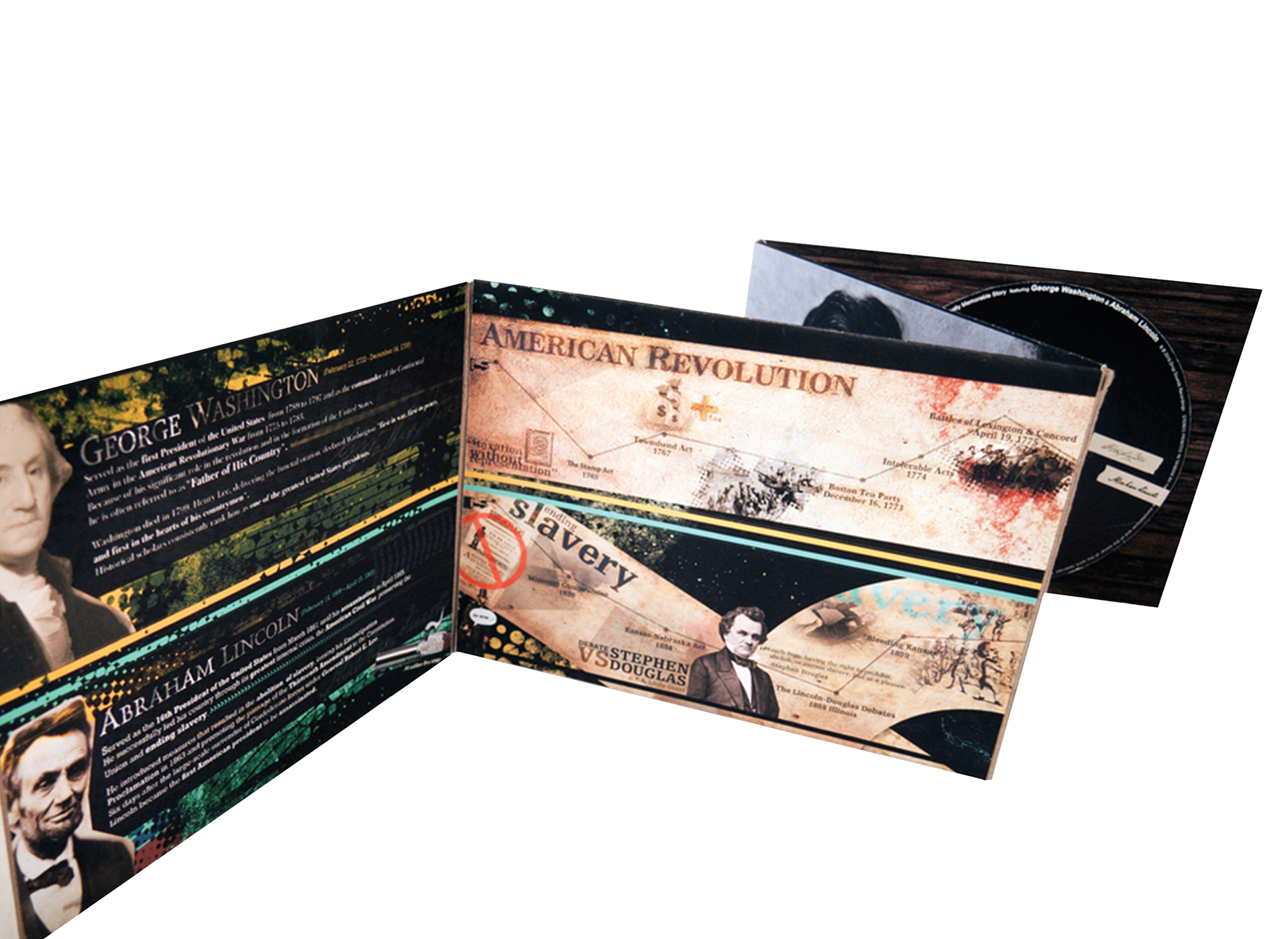 The America Greatests is a CD packaging project that visually narrates the historical timeline of two presidents of the United States of America–George Washington and Abraham Lincoln. This project demonstrates major events that were held during their presidency along with track titles that reflect their states of mind during the time.